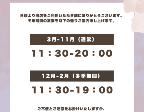 | 営業時間 | 11時30分~20時00分 |