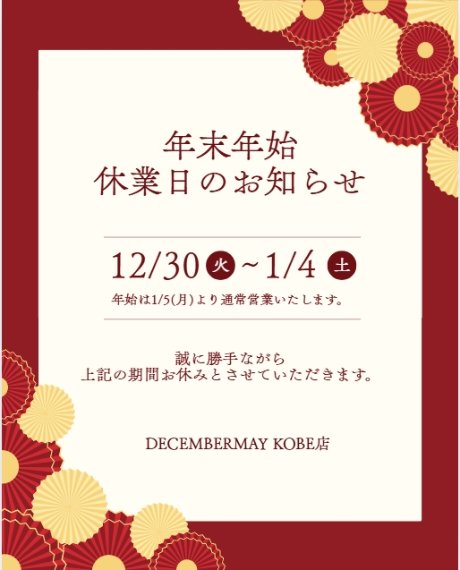 いつも DECEMBERMAY 神戸店をご利用いただき、誠にありがとうございます。